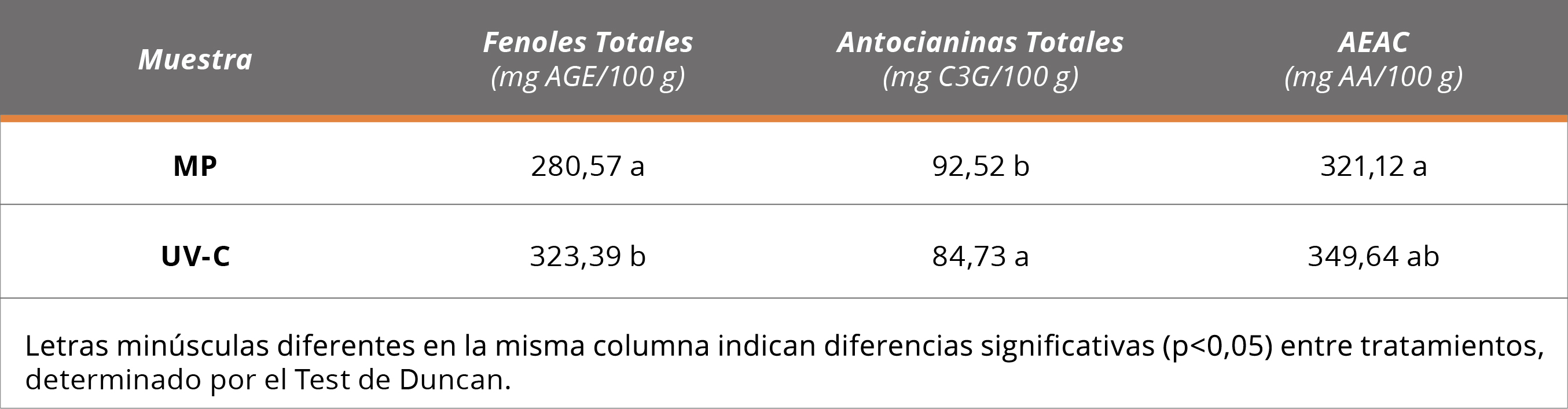 Se estudió el efecto de la radiación ultravioleta (UV-C, 4 W m-2) sobre la calidad y los mohos aislados de arándanos. Se modeló el efecto de la radiación UV-C (ensayos in vitro: 4 W m-2, durante 20 minutos) sobre los conidios de cuatro de los mohos más frecuentes y abundantes aislados de arándanos (Aspergillus niger, Arthrinium phaeospermun, Penicillium decumbens y Eurotium repens). La reducción en los recuentos de los mohos se produjo hasta los 10 minutos de tratamiento. Se aplicó el tratamiento seleccionado sobre las muestras de arándanos inoculadas con los conidios de los dos mohos más resistentes (Aspergillus niger y Arthrinium phaeospermun). La radiación UV-C (dosis = 2,4 kJ m-2, 10 minutos) incrementó ligeramente el valor de pH sin modificar significativamente el contenido de los sólidos solubles, la firmeza y el color de los arándanos. El tratamiento con UV-C incrementó el contenido de fenoles totales (13%) y la capacidad antioxidante (8%) con respecto a los arándanos sin tratar. Es fundamental identificar la microflora contaminante para aplicar correctamente el tratamiento. La dosis de UV-C seleccionada mantuvo los atributos relacionados con la calidad sensorial, aumentando el contenido de compuestos fenólicos y la capacidad antioxidante de los arándanos.