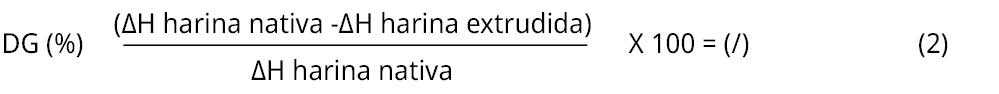 se adicionó 0,25 g de Ca(OH)2 /100 g de harina. El agregado de Ca(OH)2 en el proceso de extrusión afectó significativamente las propiedades tecnofuncionales de la HMEA, aumentando el índice de solubilidad (ISA), y disminuyendo el índice de absorción de agua (IAA) y la capacidad de retención de aceite (CRA) respecto a la HME. El tratamiento alcalino disminuyó el grado de gelatinización respecto a la HME, obteniendo valores entre 31,80 y 57.90% y aumentando la temperatura de gelatinización de 69 a 73 °C. La firmeza de los geles varió de 0,26 a 0,33 N para HMEA, y de 0,50 a 0,77 N para HME. La extrusión alcalina modificó las propiedades tecnofuncionales de la harina de maíz cuzco, disminuyendo la absorción de agua y controlando el grado de gelatinización, obteniéndose harinas con grado de cocción intermedio.