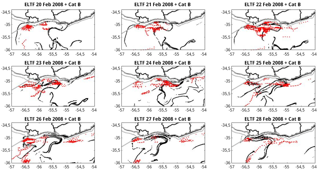 de Mello, C., Barreiro, M., Hernández-García, E., Trinchin, R. y Manta, G., en prensa. A Lagrangian study of summer upwelling along the Uruguayan coast. En: Continental Shelf Research.