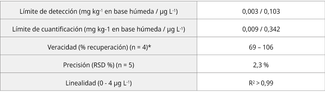 Iaquinta, F.; Lopes Fialho, L.; Nóbrega, J.A.; Pistón, M. y Machado, I., 2021. Determination of Cd, Pb and Se in beef samples using aerosol dilution by ICP-MS. En: Food Measurement and Characterization, 15, pp. 4105–4111. DOI: https://doi.org/10.1007/s11694-021-00999-3