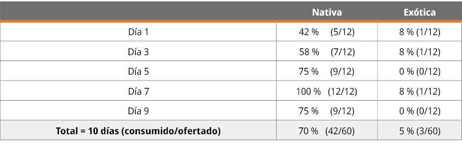 La declinación de anfibios constituye una preocupación actual, siendo la presencia de especies exóticas invasoras (EEI) una de las principales amenazas a la biodiversidad. En Uruguay, una de las EEI que afecta la biodiversidad autóctona es el anuro exótico invasor Aquarana catesbeiana (rana toro), invadiendo más de 60 charcos en tres localidades. El presente trabajo propone el análisis de la viabilidad del control biológico de larvas de rana toro mediante el uso del pez nativo Rhamdia quelen (bagre negro). Se realizó un ensayo de depredación en laboratorio para evaluar si consume las larvas de la especie exótica rana toro y de la rana nativa Leptodactylus luctator. Los renacuajos en los estadios 24-26 (utilizando el criterio de Gosner) de ambas especies se expusieron a depredación directa y se determinó el número de larvas que consumió cada ejemplar de R. quelen. Cada pez depredó significativamente sobre ambas especies; sin embargo, la intensidad fue menor en las larvas exóticas (5 %) que en nativas (70 %). La introducción de especies de peces autóctonos para el control biológico constituye una oportunidad en cuerpos de agua permanentes donde A. catesbeiana se encuentra bien establecida. En una etapa inicial del proceso de invasión donde hay presencia de otras especies nativas de anfibios, R. quelen no serviría para biocontrol ya que eliminaría a las larvas de la especie nativa, favoreciendo a la rana toro.